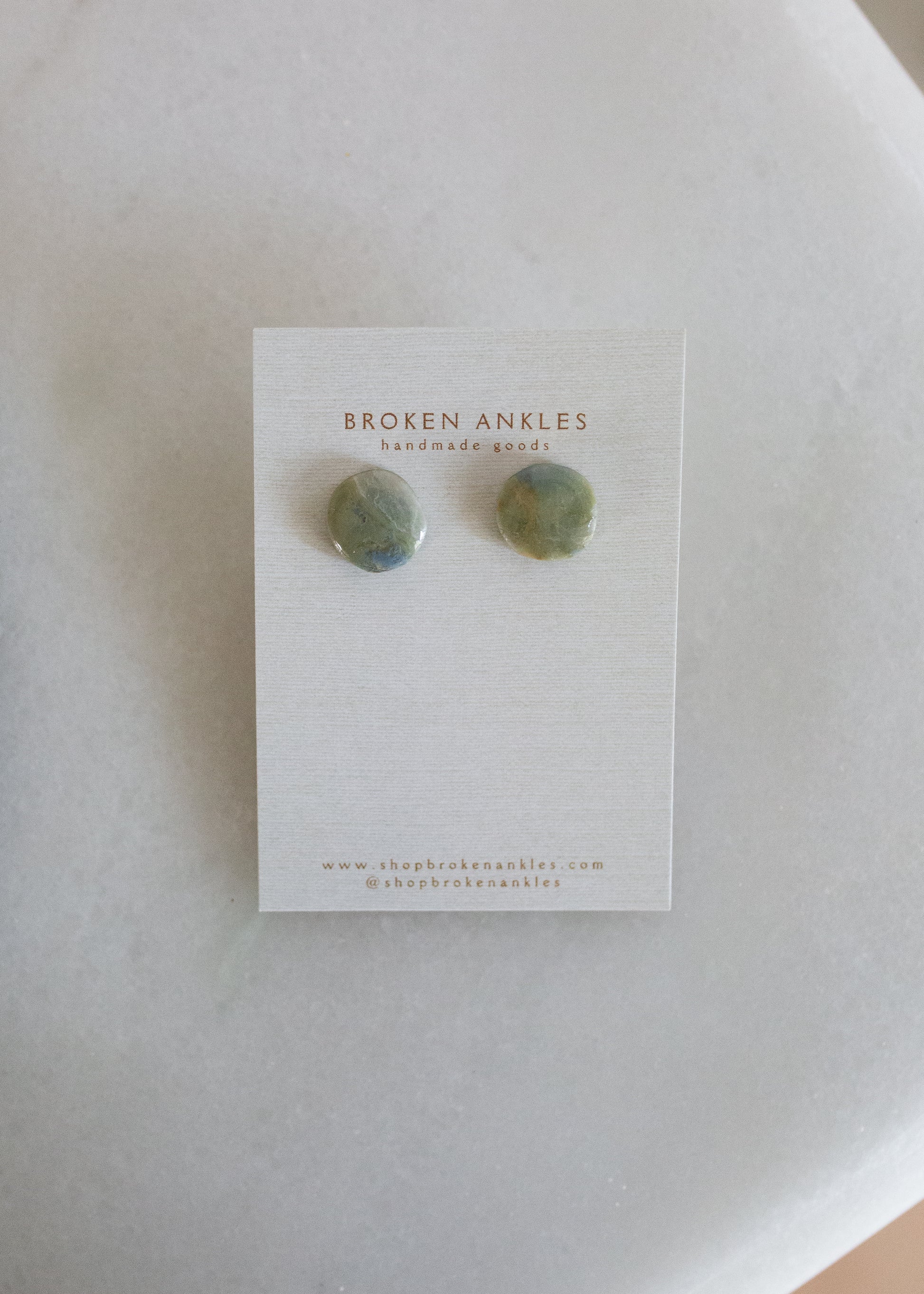 These earrings are handmade is Woodstock, GA. They are made from Polymer Clay and sealed with resin. The post are stainless steel that are hypoallergenic and nickel free.