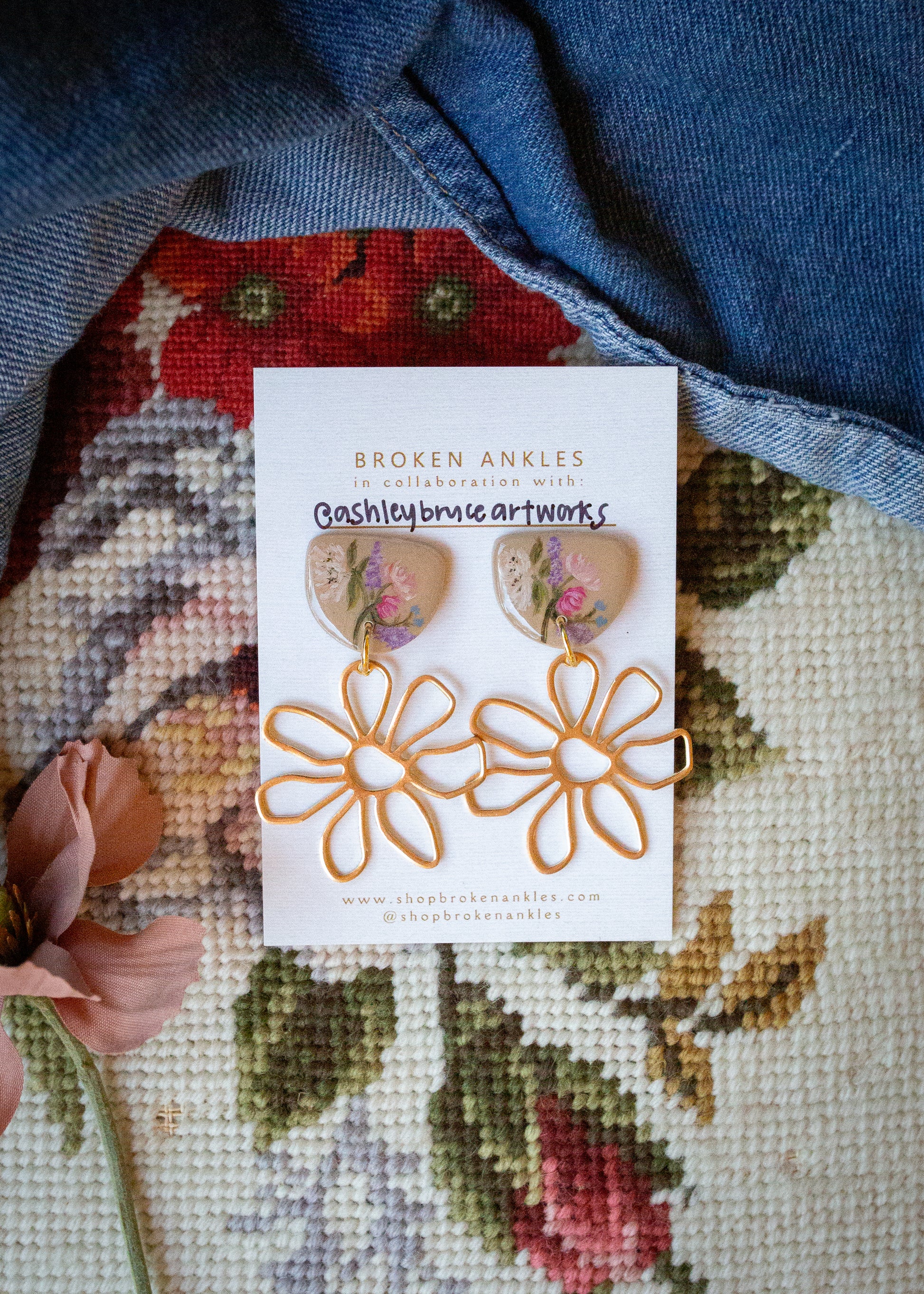 These earrings are handmade in Woodstock, GA. They are made from Polymer Clay, hand printed by @Ashleybruceartworks, and sealed with a resin finish. They are very light and can add the perfect pop of color to an outfit.