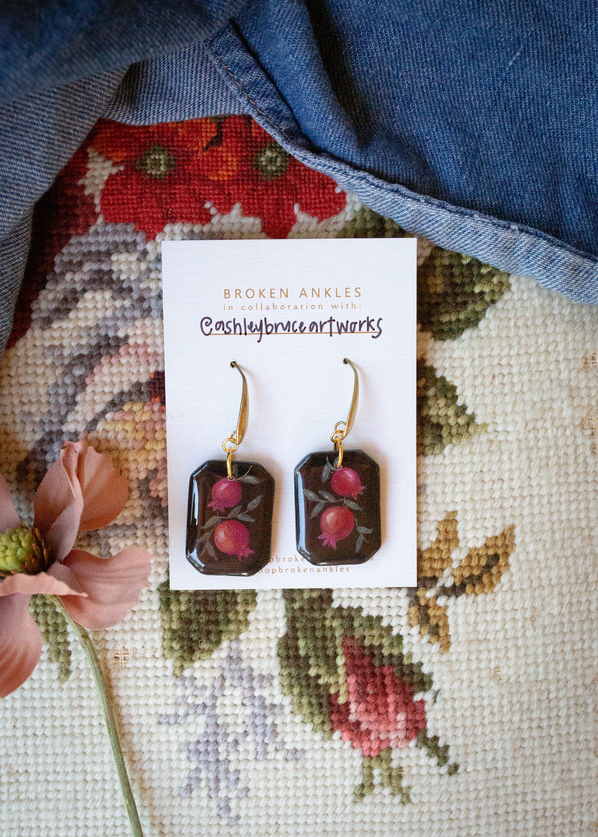 These earrings are handmade in Woodstock, GA. They are made from Polymer Clay, hand printed by @Ashleybruceartworks, and sealed with a resin finish. They are very light and can add the perfect pop of color to an outfit.