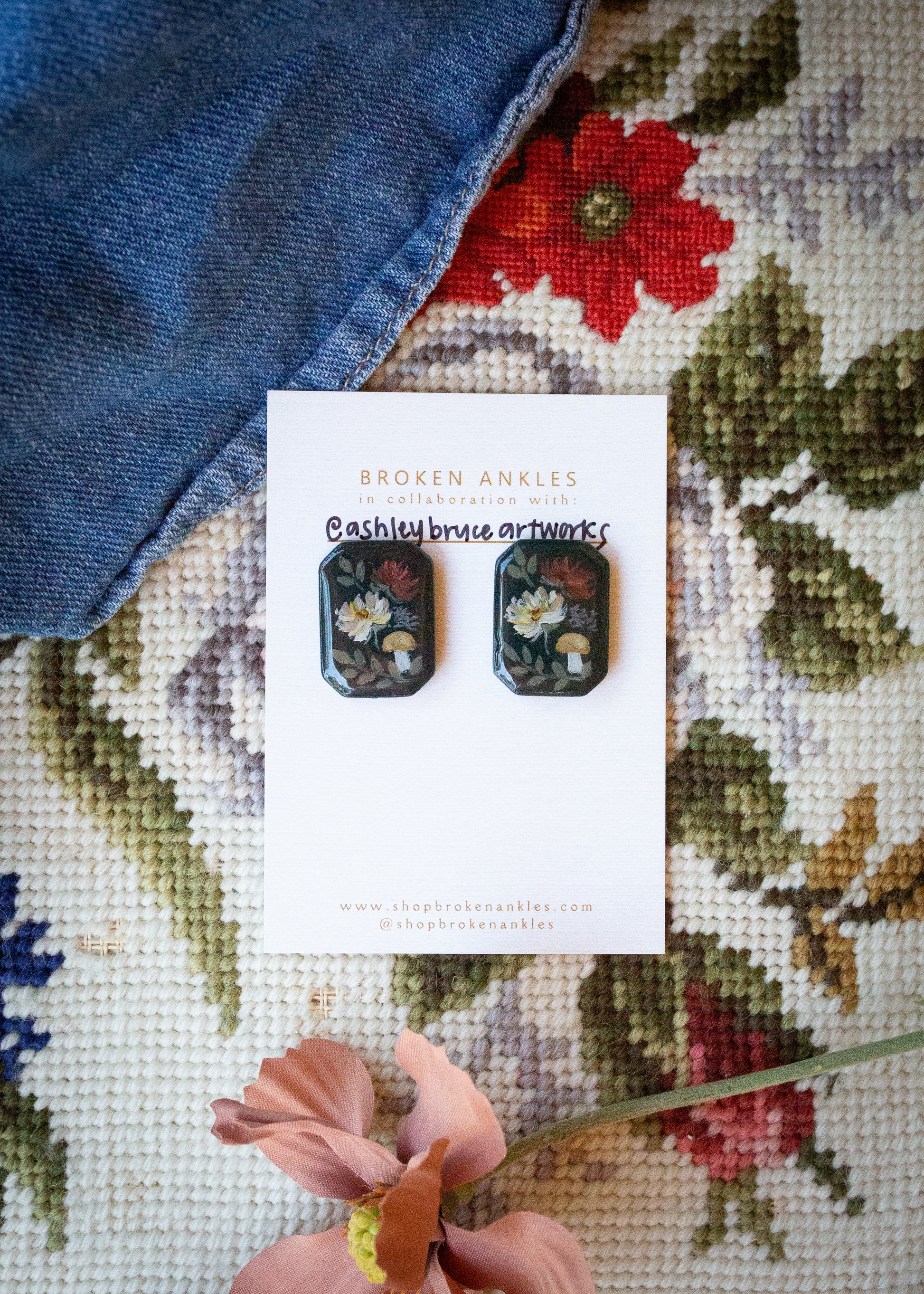 These earrings are handmade in Woodstock, GA. They are made from Polymer Clay, hand printed by @Ashleybruceartworks, and sealed with a resin finish. They are very light and can add the perfect pop of color to an outfit.