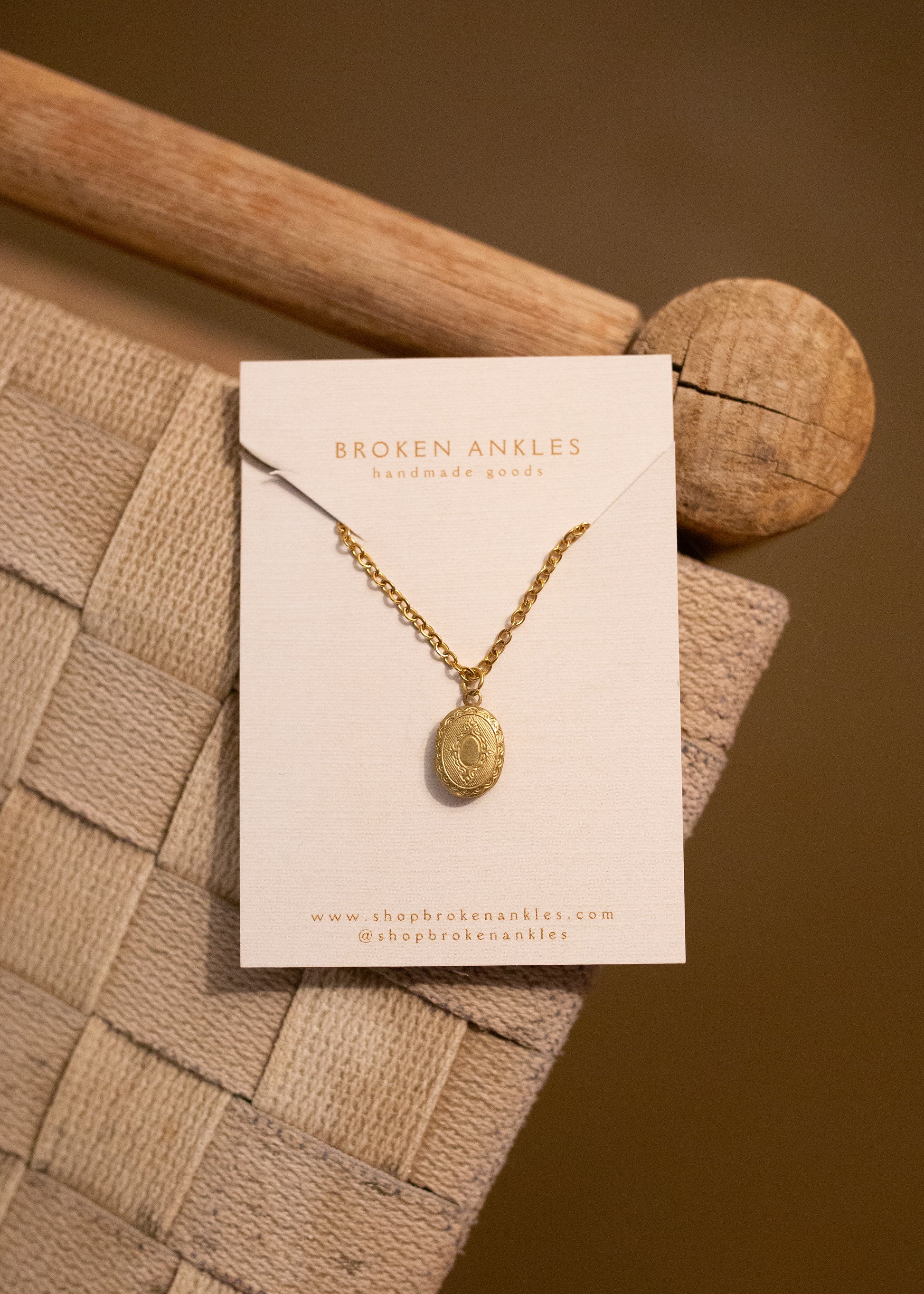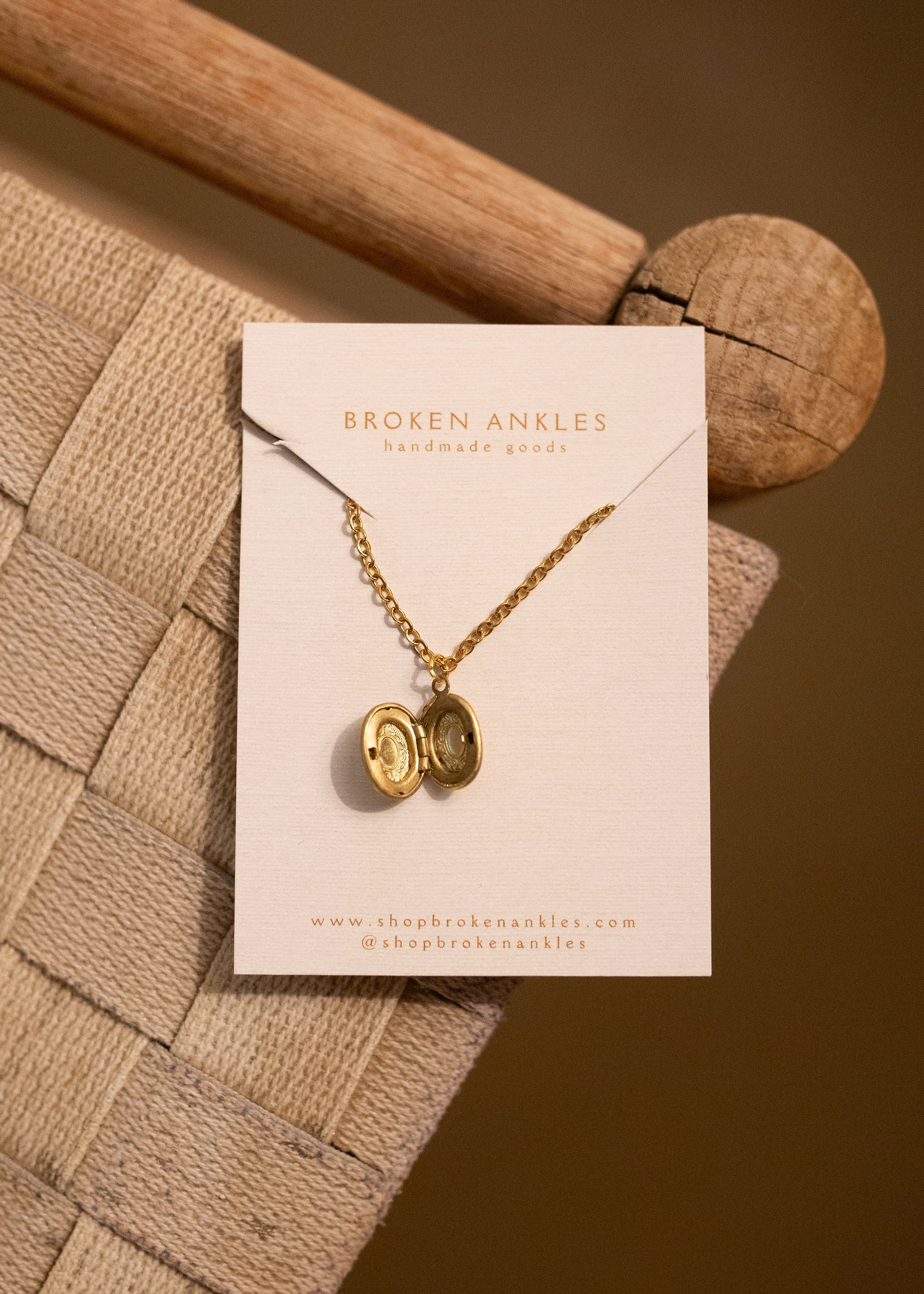 The chain is a gold stainless steel that won’t tarnish and the locket is raw brass!