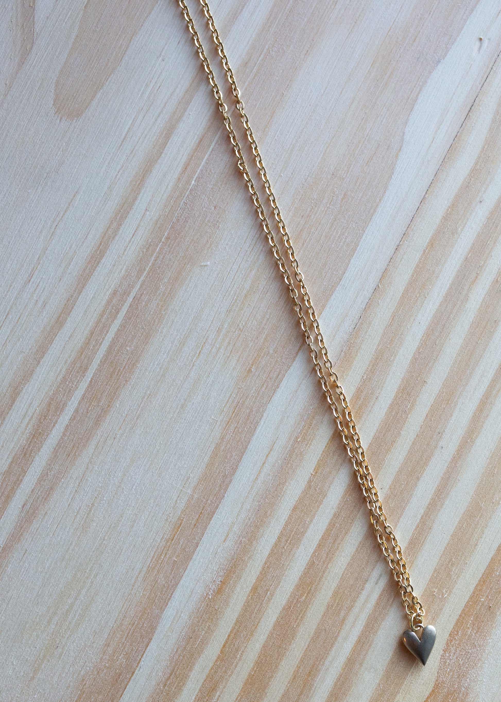 The chain is a gold stainless steel that won’t tarnish and the locket is raw brass!